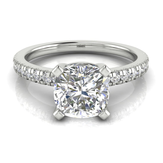 French Pave Basket Cushion Cut Lab Diamond Engagement Ring