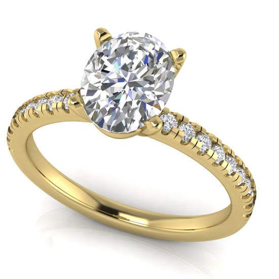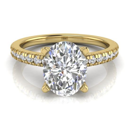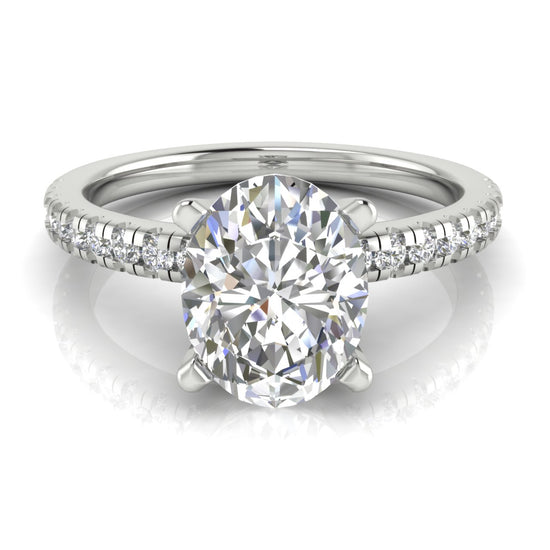 French Pave Basket Oval Moissanite Engagement Ring