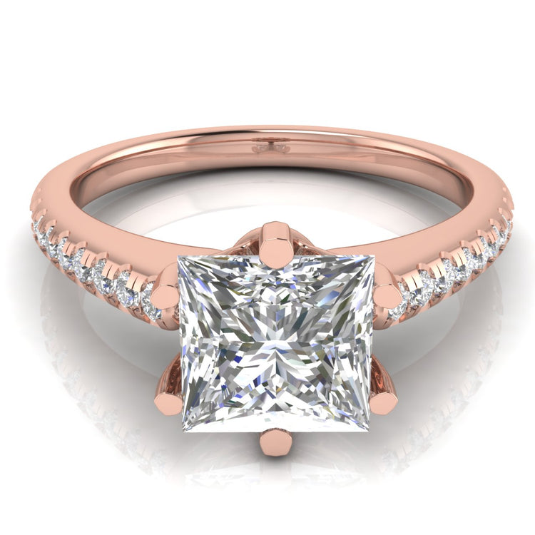 Embrace your love story with the French Pave Princess Cut Moissanite Engagement Ring from Lyra Jewels. It is a timeless expression of your enduring commitment and impeccable style."