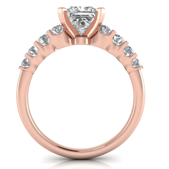 Graduated Pave Princess Cut Lab Diamond Engagement Ring