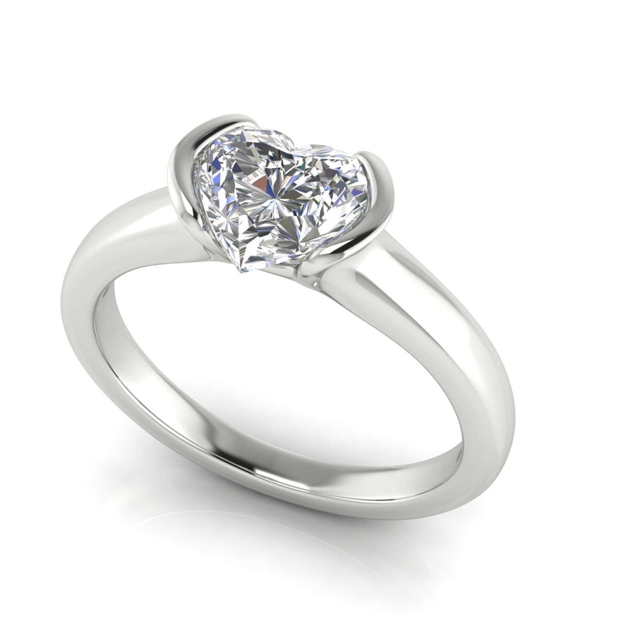 Half Bezel Heart Shaped Moissanite Engagement Ring