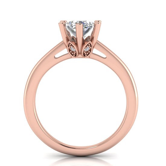 This Oval Moissanite Engagement Ring from the Lotus Pave collection is not only a gorgeous ornament but also a cherishable token of love. Its traditional style and contemporary appeal mean it is built to last, commemorating your special occasions for a lifetime."