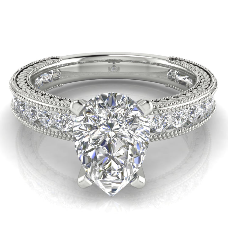Nature Milgrain Pear Shaped Moissanite Engagement Ring