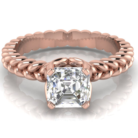 Rope Band Emerald Cut Lab Diamond Engagement Ring
