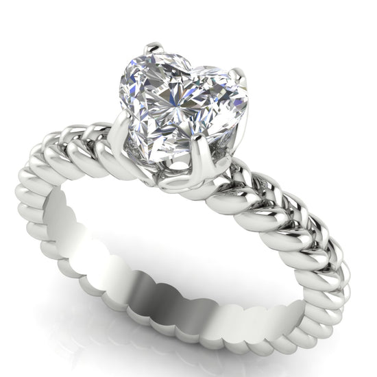 Rope Band Heart Shaped Moissanite Engagement Ring