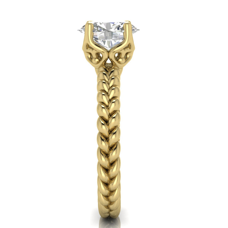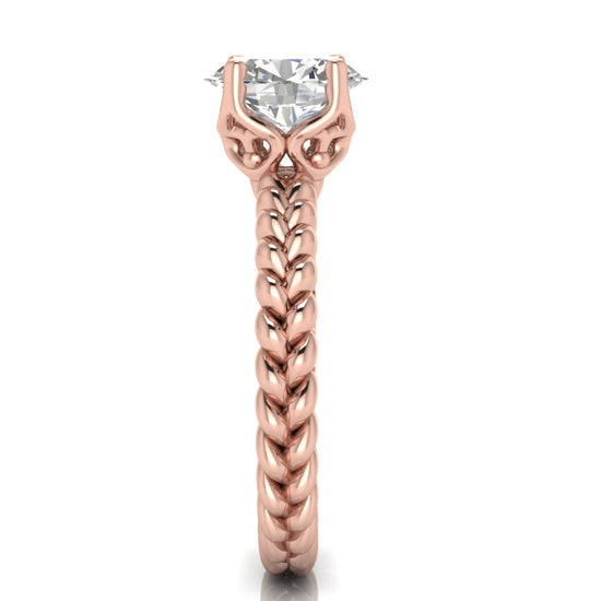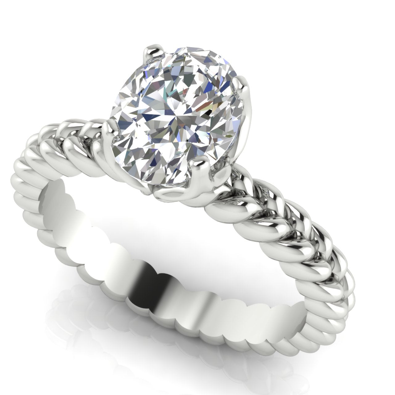 The unique rope band setting enhances the piece by contrasting with the oval shape of the stone. With choices of 14K and 18K white, yellow, and rose gold, the buyer can easily find the right style. Perfect for engagements, anniversaries, or as an addition to your jewelry collection, it symbolizes Lyra Jewels’ commitment to creating quality jewelry. The Oval Moissanite Engagement Ring in the Rope Band is an example of exquisite design for those who want to declare their love. This ring is traditional in style and manufactured to high standards, designed to be treasured for a lifetime