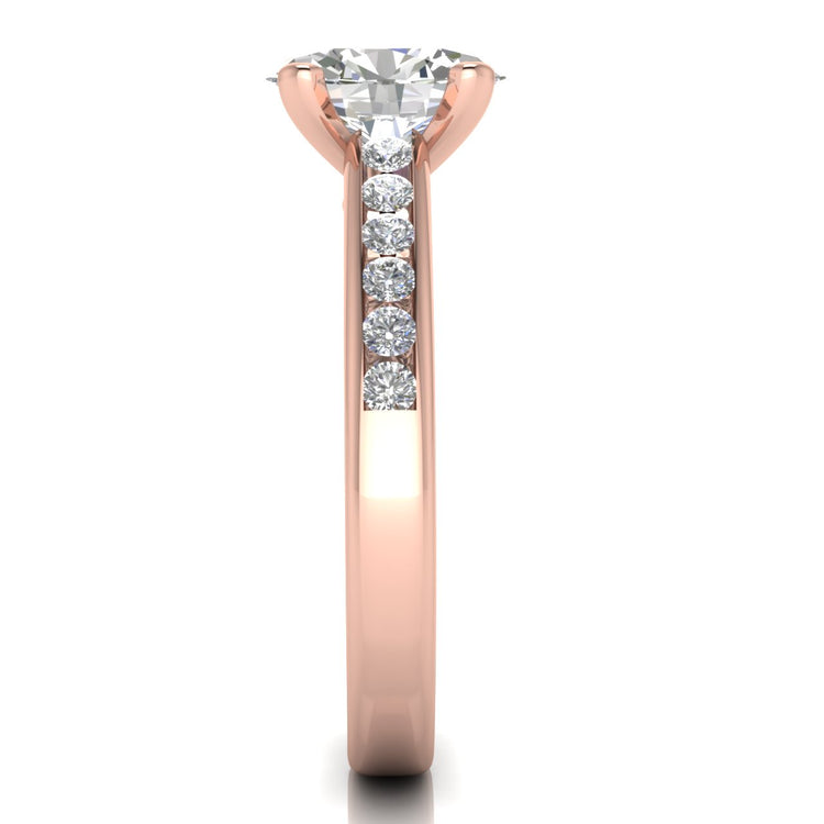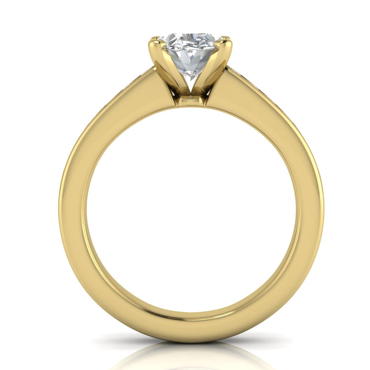 Discover the timeless elegance of the Round Channel Set Oval Cut Moissanite Engagement Ring from Lyra Jewels. This exquisite ring combines modern design with the brilliance of ethically sourced gemstones, making it a perfect symbol of your enduring love.