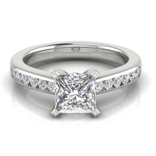 Round Channel Set Princess Cut Moissanite Engagement Ring