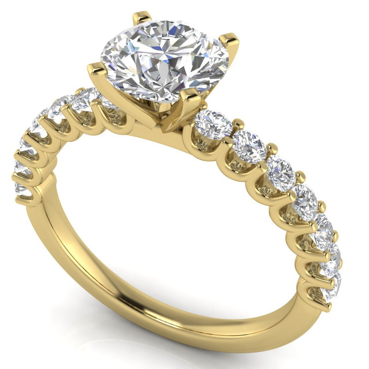 U Prong Pave Round Cut Lab Diamond Engagement Ring